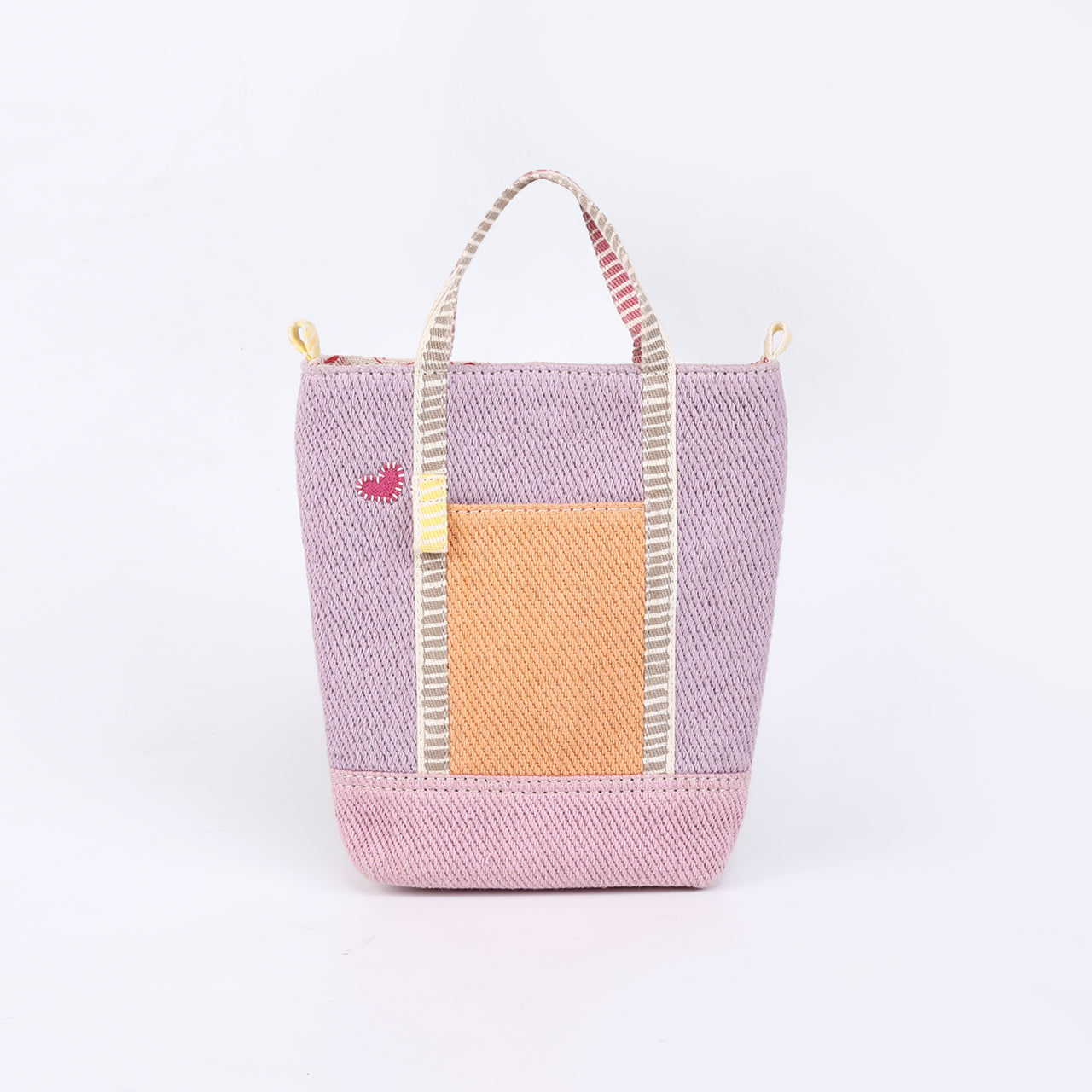 Say hello to Mink – Tiny Taffy, a dreamy little tote in soft lilac with a cheerful orange mini pocket for tiny treasures. The front charm loop lets little ones personalise it with their favourite trinkets, while the long sling easily converts it into a hands-free bag. Sweet, playful, and ready for every little adventure.