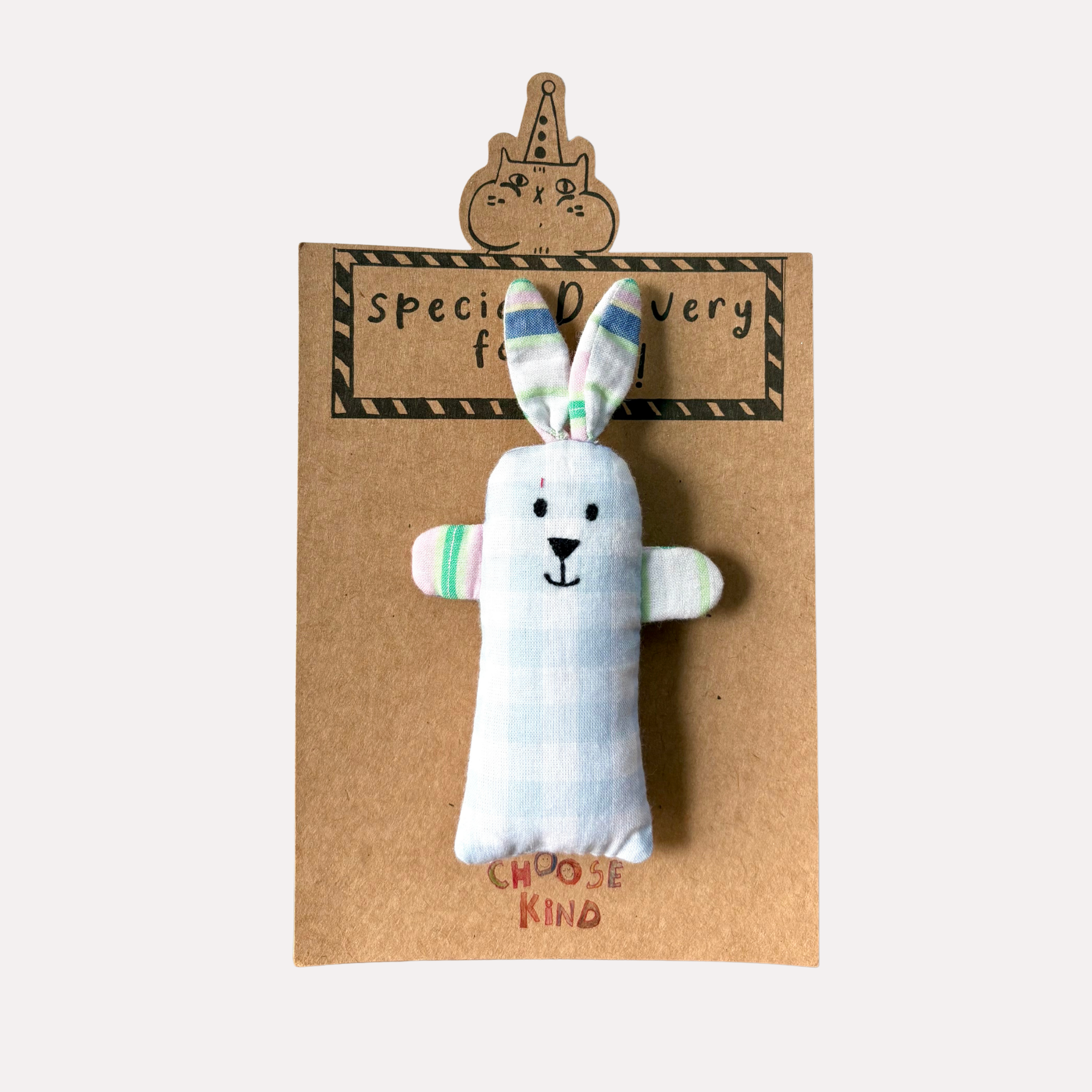 Say hello to Bun-Blu — a cheerful little bunny who adores all things soft and sky-blue! Crafted from upcycled fabric with gentle blue tones, playful patterns, and a sprinkle of charm, this brooch is full of warmth and whimsy.