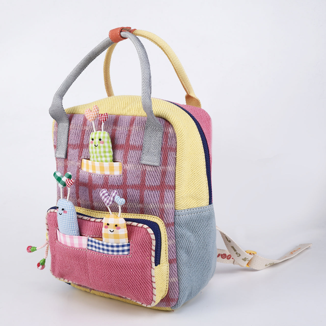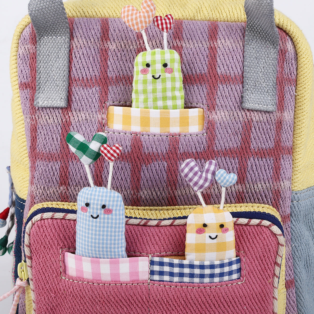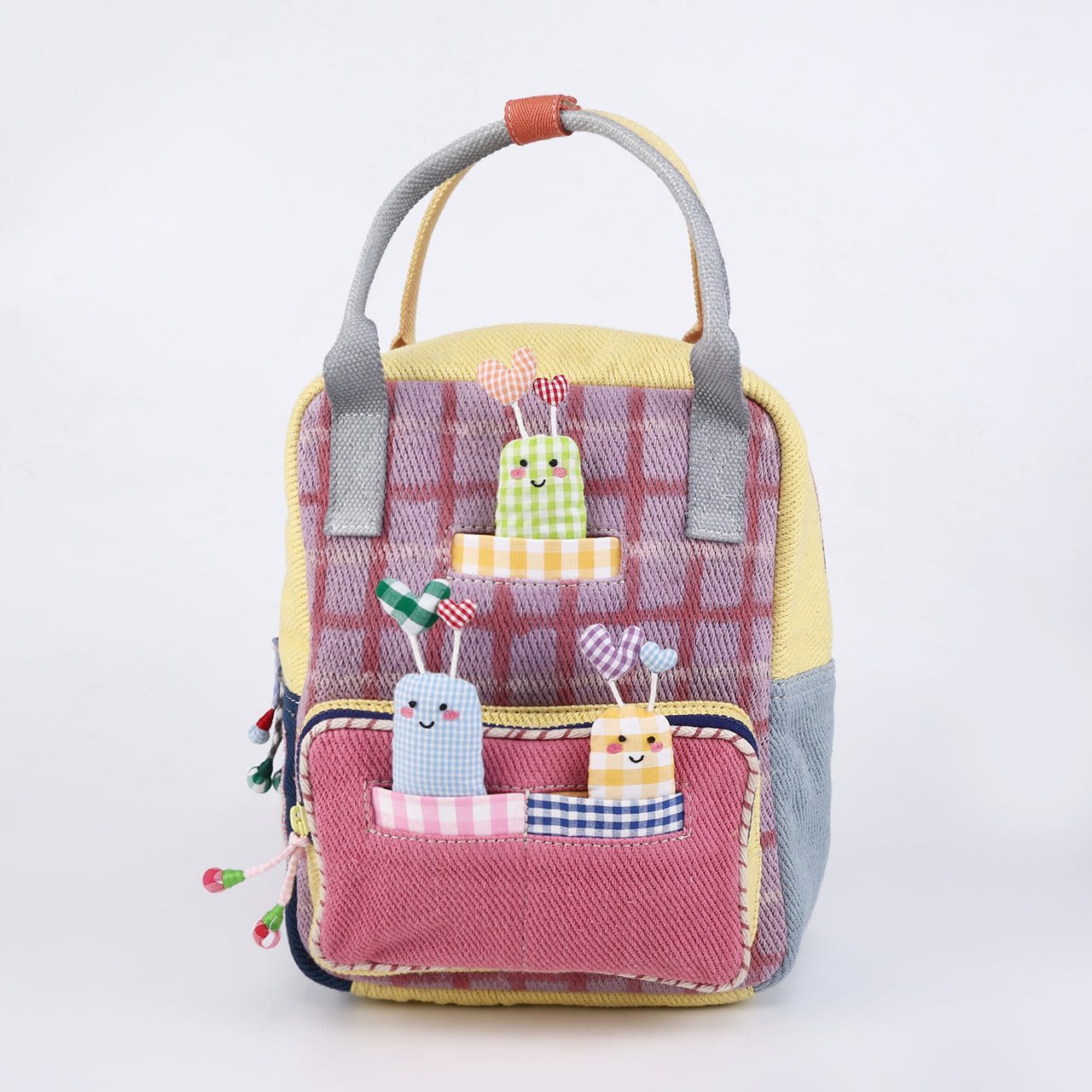 Humphead – Sweet Pop Pals is a joyful little bag bursting with playful energy and candy-colored charm. Featuring adorable pop-shaped characters with smiling faces, gingham details, and soft pastel hues, this bag feels like carrying a tiny candy party wherever you go. The mix of textures, checks, and cheerful appliqués makes every glance feel like a serotonin boost.
